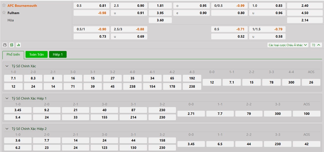 Soi kèo hiệp 1 trận Bournemouth vs Fulham
