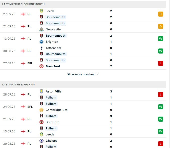 – Bournemouth toàn thắng 3 trận sân nhà gần nhất đón tiếp Fulham.