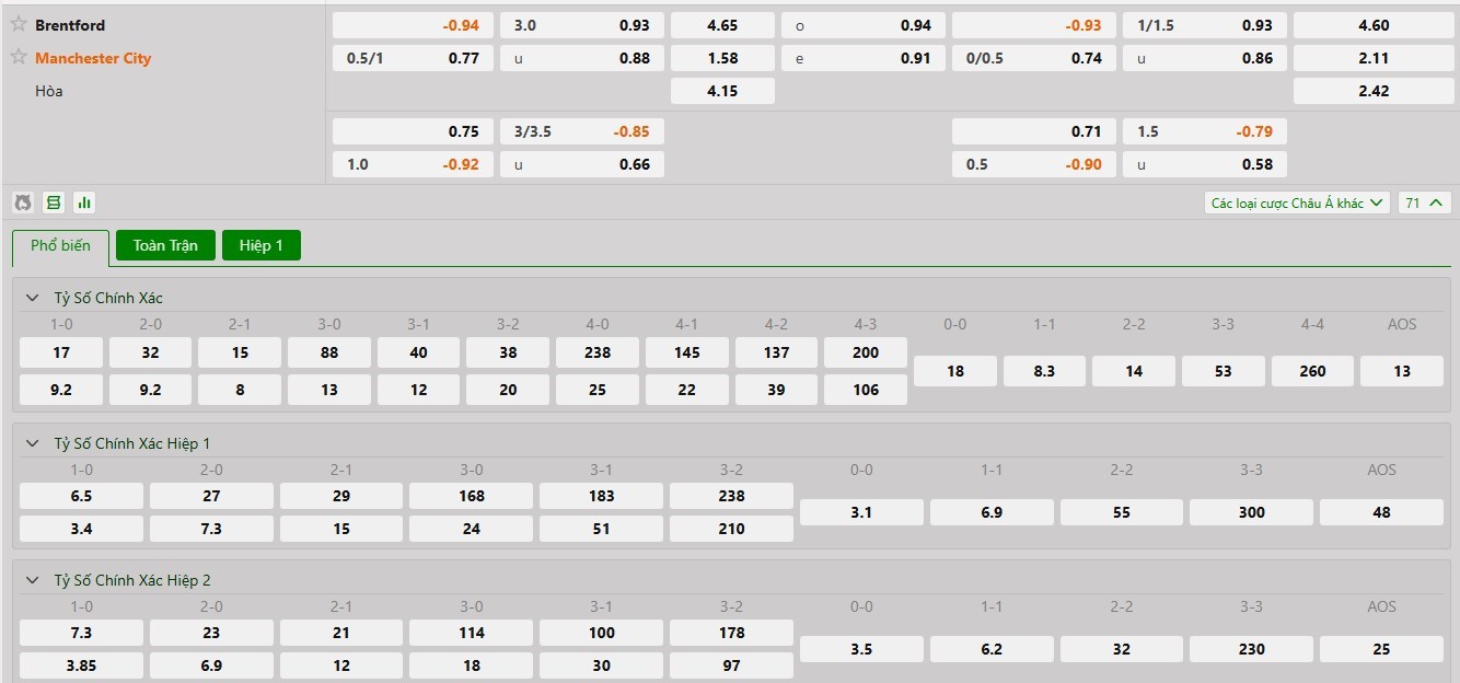 Soi kèo hiệp 1 trận Brentford vs Man City
