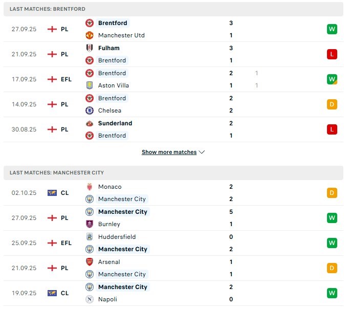 Brentford đã tìm lại được cảm giác chiến thắng bằng thắng lợi 3-1 trước Manchester United ở vòng đấu gần nhất tại giải Ngoại hạng Anh. Chiến thắng này giúp họ cắt đứt chuỗi 4 trận liền chỉ toàn hòa và thua trước đó. Trong 6 vòng đấu đầu tiên ở Ngoại hạng Anh mùa bóng 2025/26, đội bóng thành London để thua Nottingham Forest, Sunderland và Fulham, nhưng họ cũng có những chiến tích đáng nể khi vượt qua Man United, Aston Villa hay cầm hòa Chelsea. Không sở hữu thành tích quá ấn tượng nhưng mỗi khi chơi trên sân nhà thì Brentford vẫn biết cách tạo ra sự khó chịu cho đối thủ. Chẳng phải ngẫu nhiên mà Brentford vẫn đang duy trì thành tích bất bại trên sân nhà từ đầu mùa. Phải chạm trán Man City tại vòng đấu sắp tới tiếp tục là thử thách lớn hơn dành cho Brentford