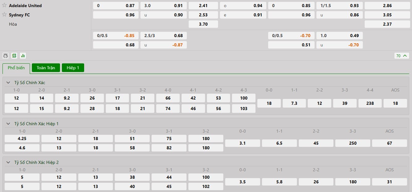 Soi kèo hiệp 1 trận Adelaide United vs Sydney FC